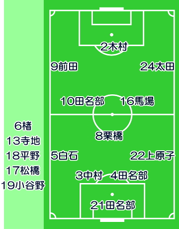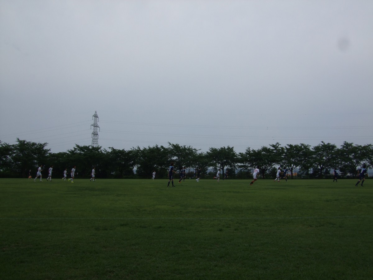 キックは無常にもバーの上へ…。0-2で前半終了。
