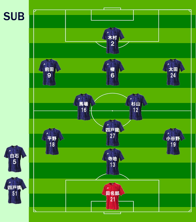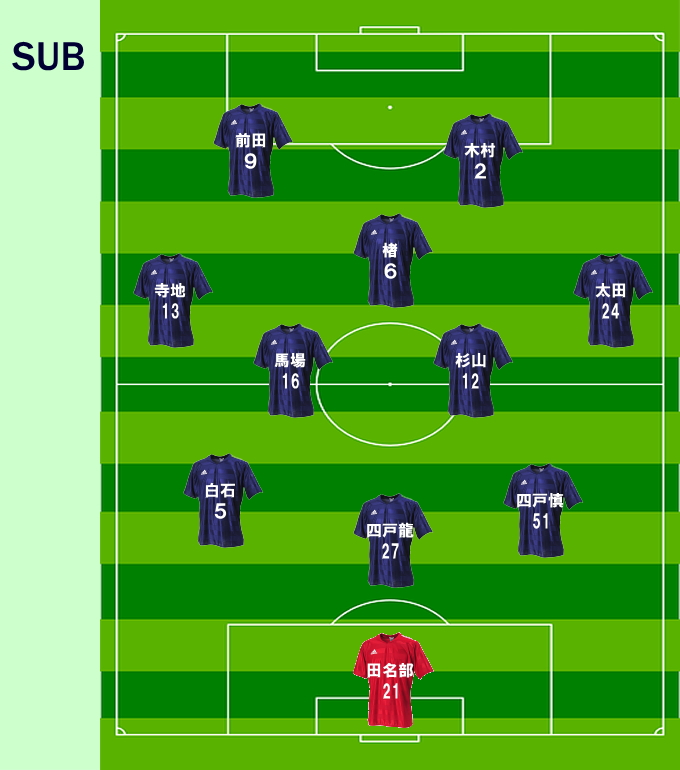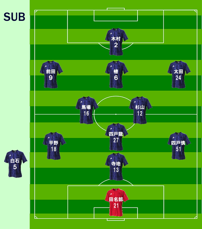 後半、小谷野君の動きは良かったが新加入の四戸慎を右サイドバックに。