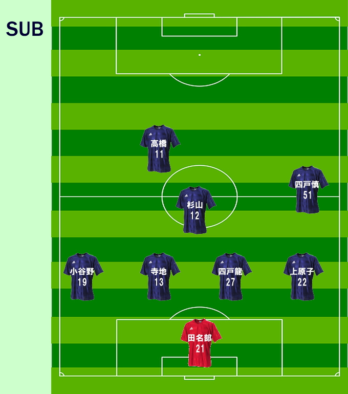 プレスもハーフの後ろからで、引きに引いた状況で10分しのぎ