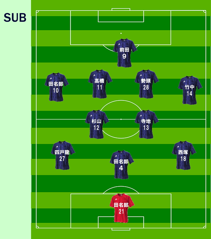 後半、思い切って3バックにシステム変更。(メンバーに合わせたシステム)