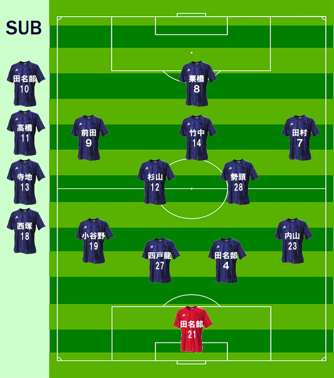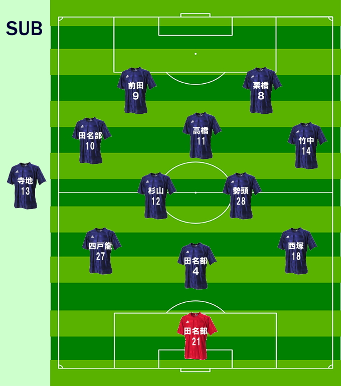 得点:2点 栗橋 1点 田村、田名部勝、竹中、前田