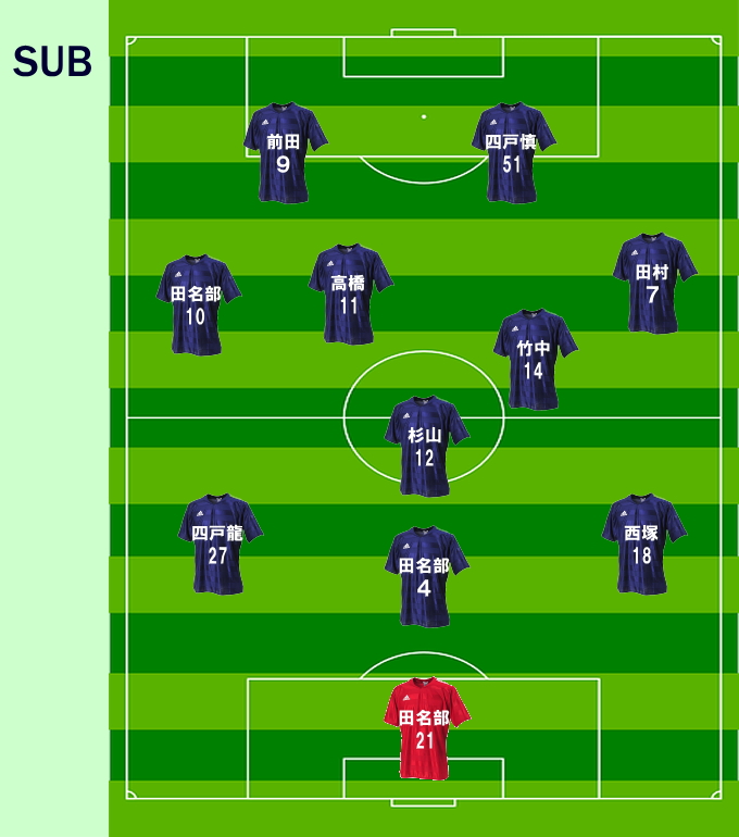 後半は3バックにシステム変更。