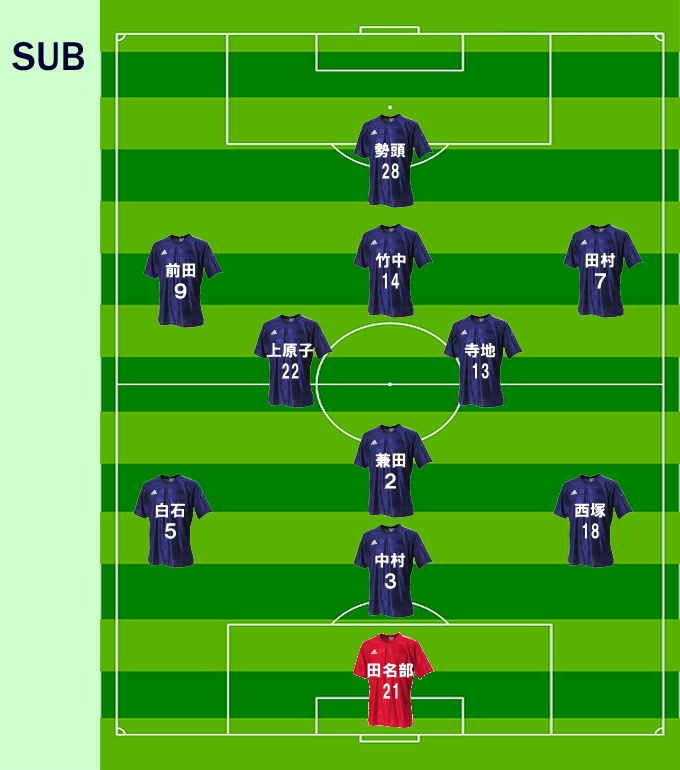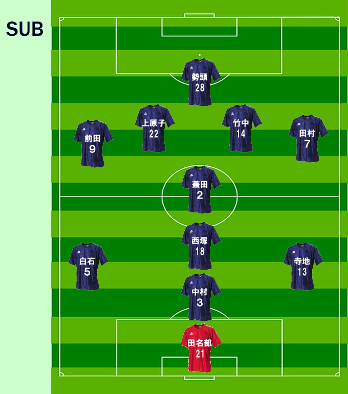 1点 杉山、前田、栗橋、上原子