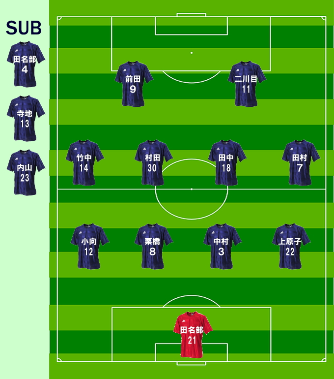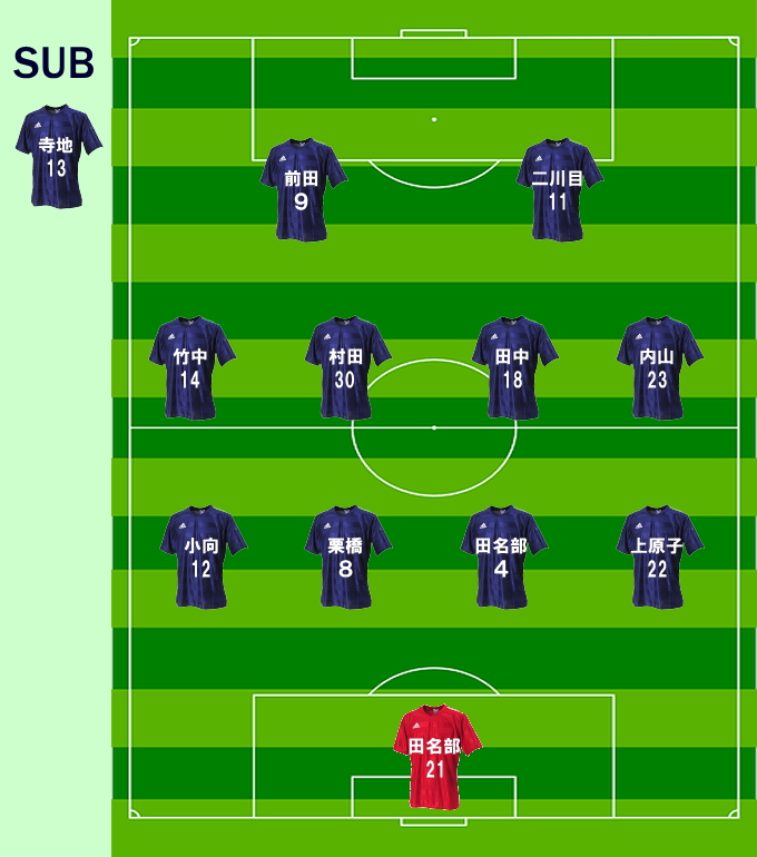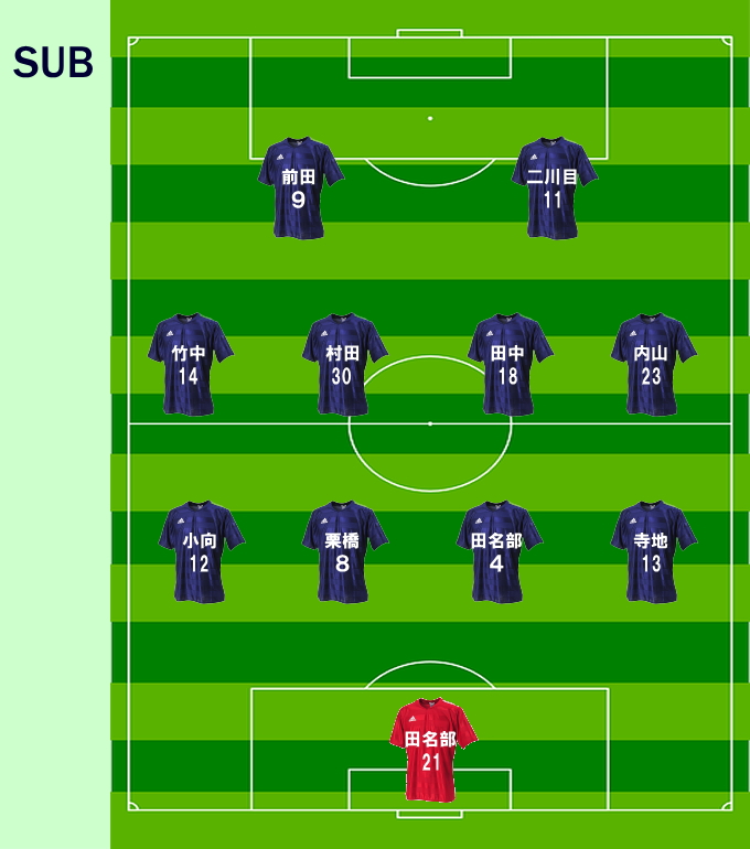 お守に専念するため直哉君に変わって内山君が右サイド。