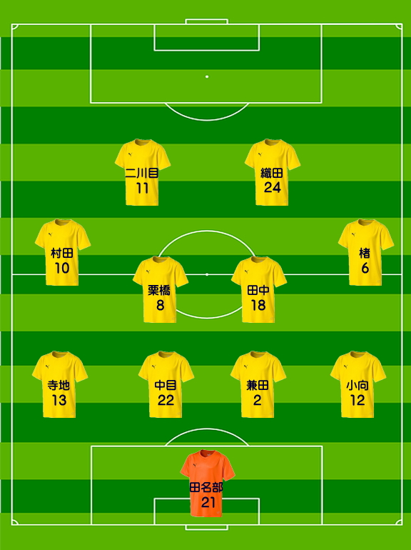 アシスト:織田②、田中、二川目